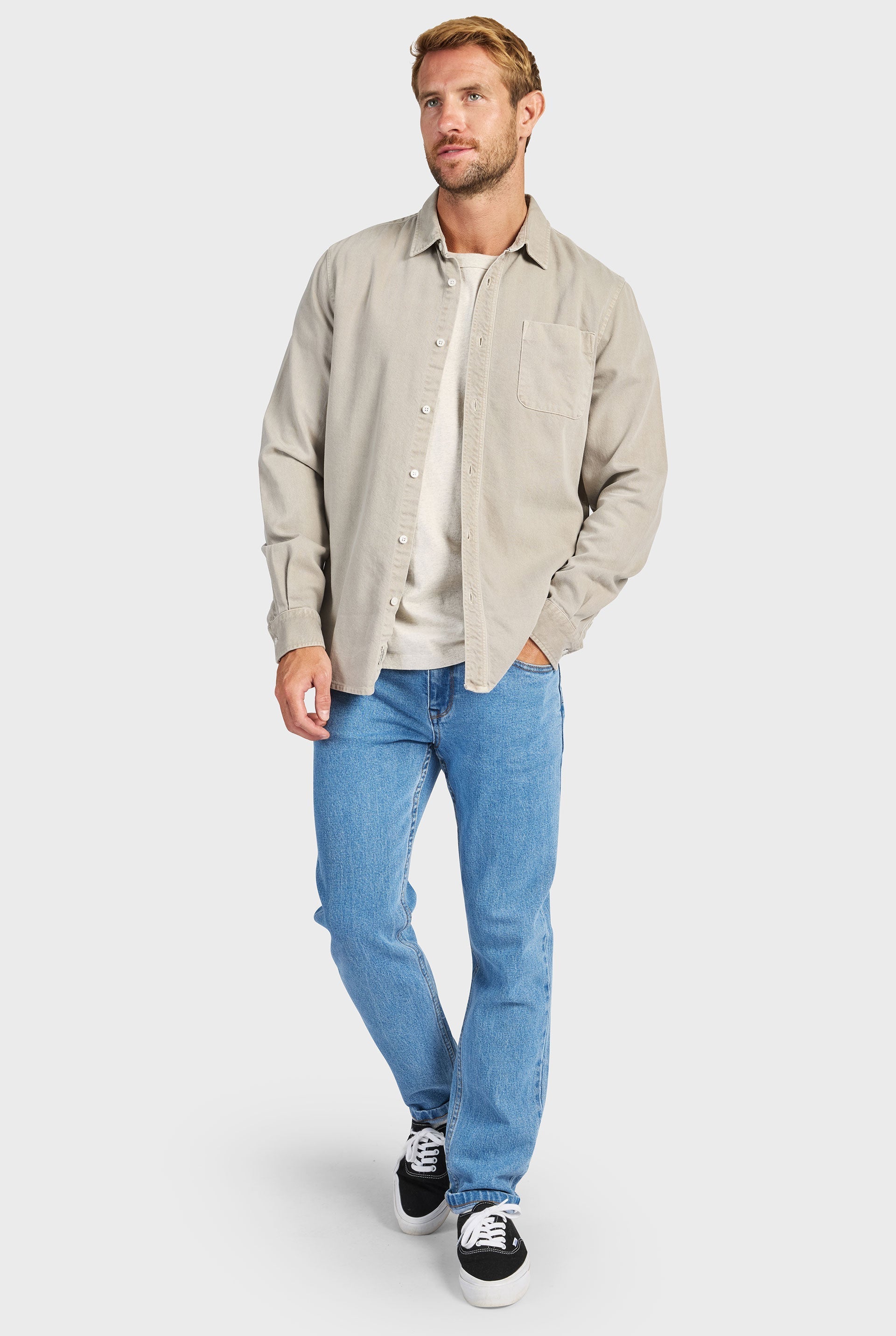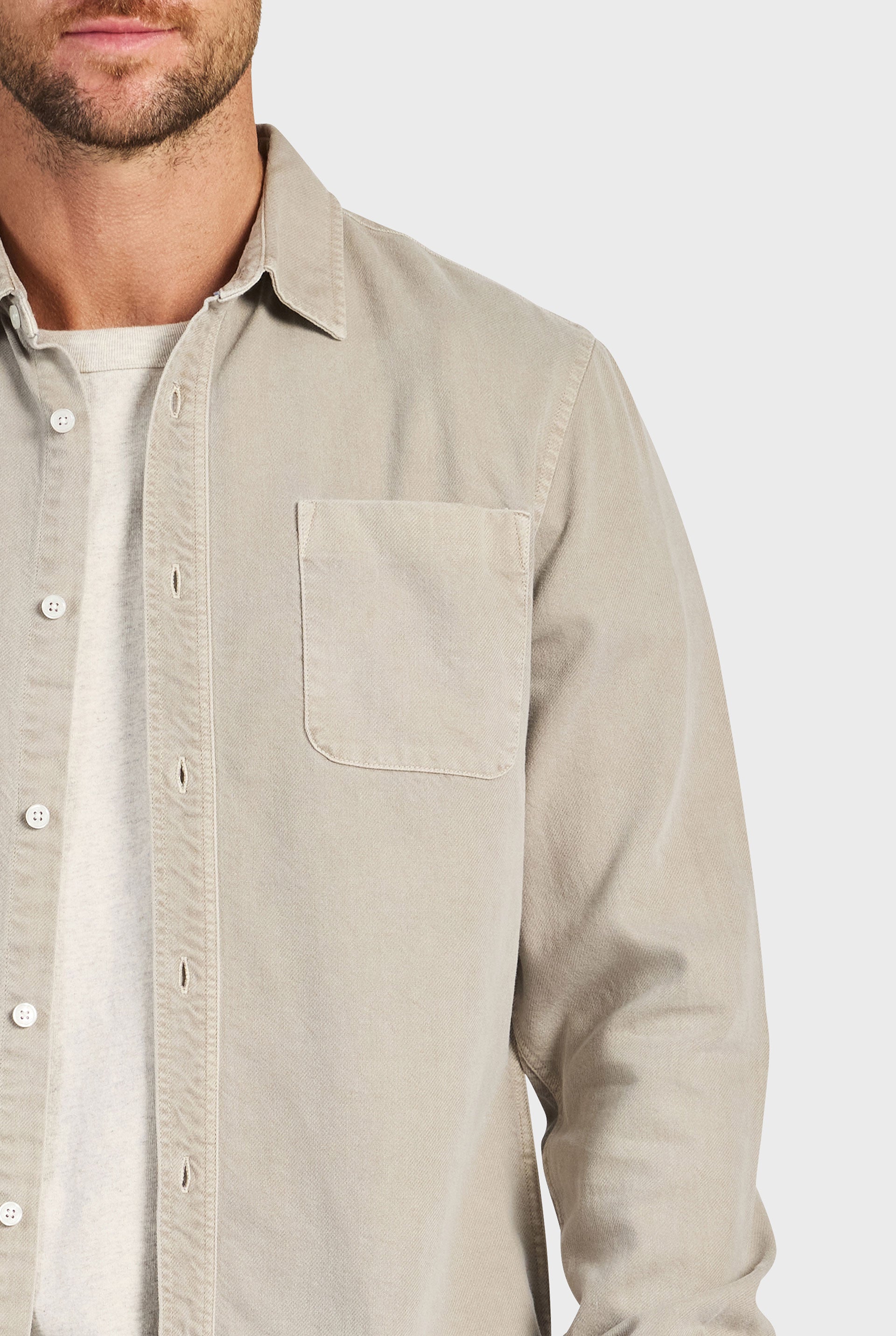 A unique and timeless plain casual winter shirting option. The McQueen Twill Shirt has undergone a vintage pigment garment dye which adds to its rugged masculine appearance. With its simple styling and easy-to-wear tones, it is ideal for layering over a tee and as an overshirt on those slightly warmer days.